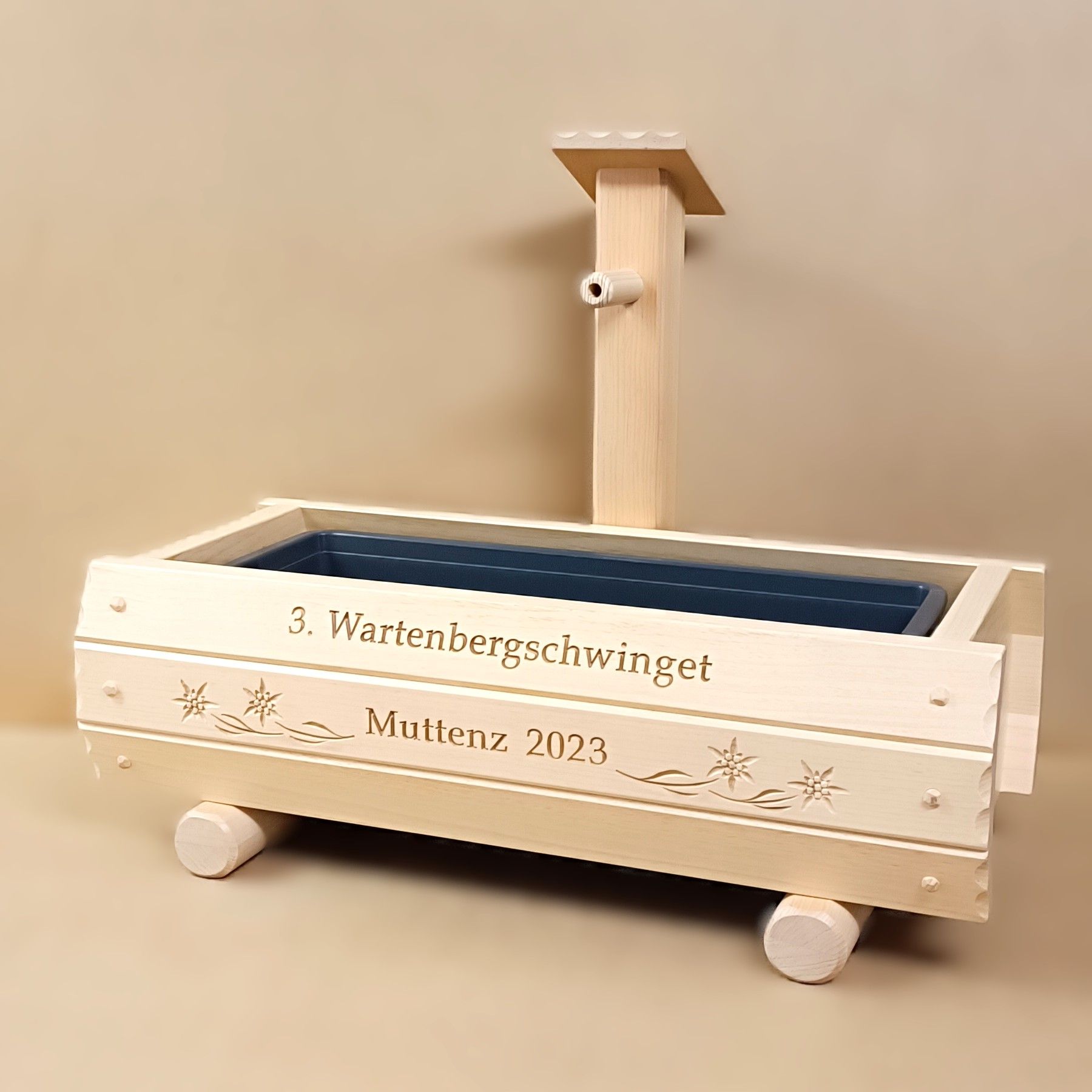 Vorne 3 Flächen für Beschriftungen und individuelle Schnitzereien.