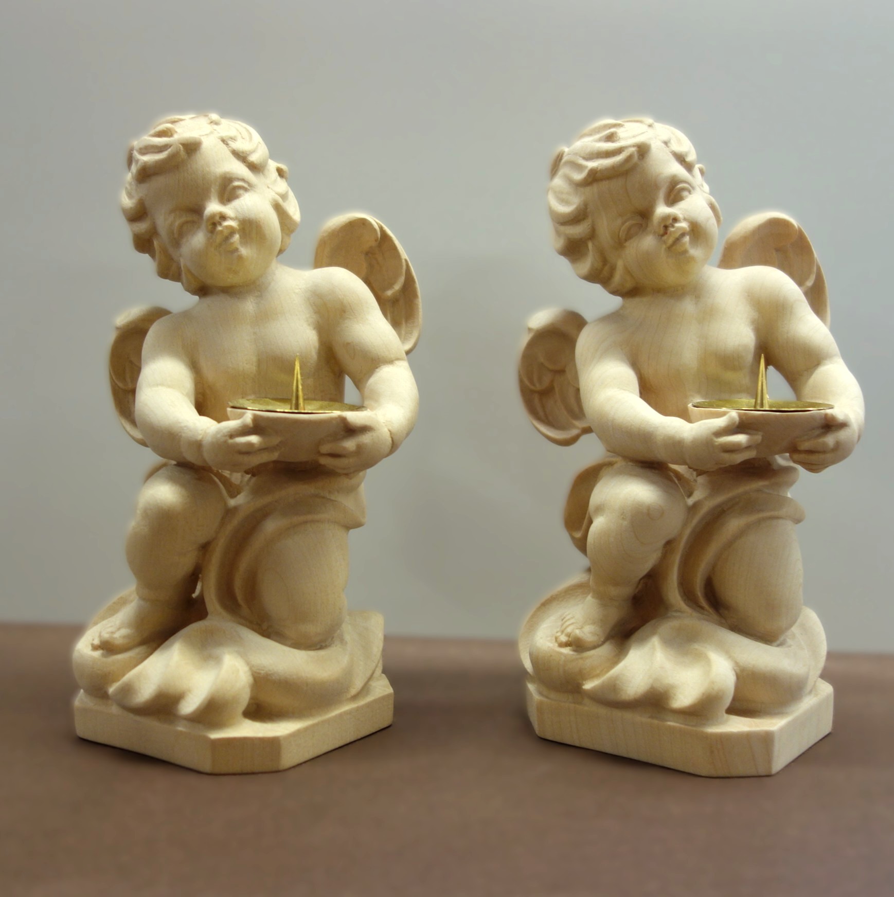 Sehr schön gearbeiteter Engel. Ein stabiler Kerzenhalter mit Tropfschutzschale aus Metall Ø 4 cm.