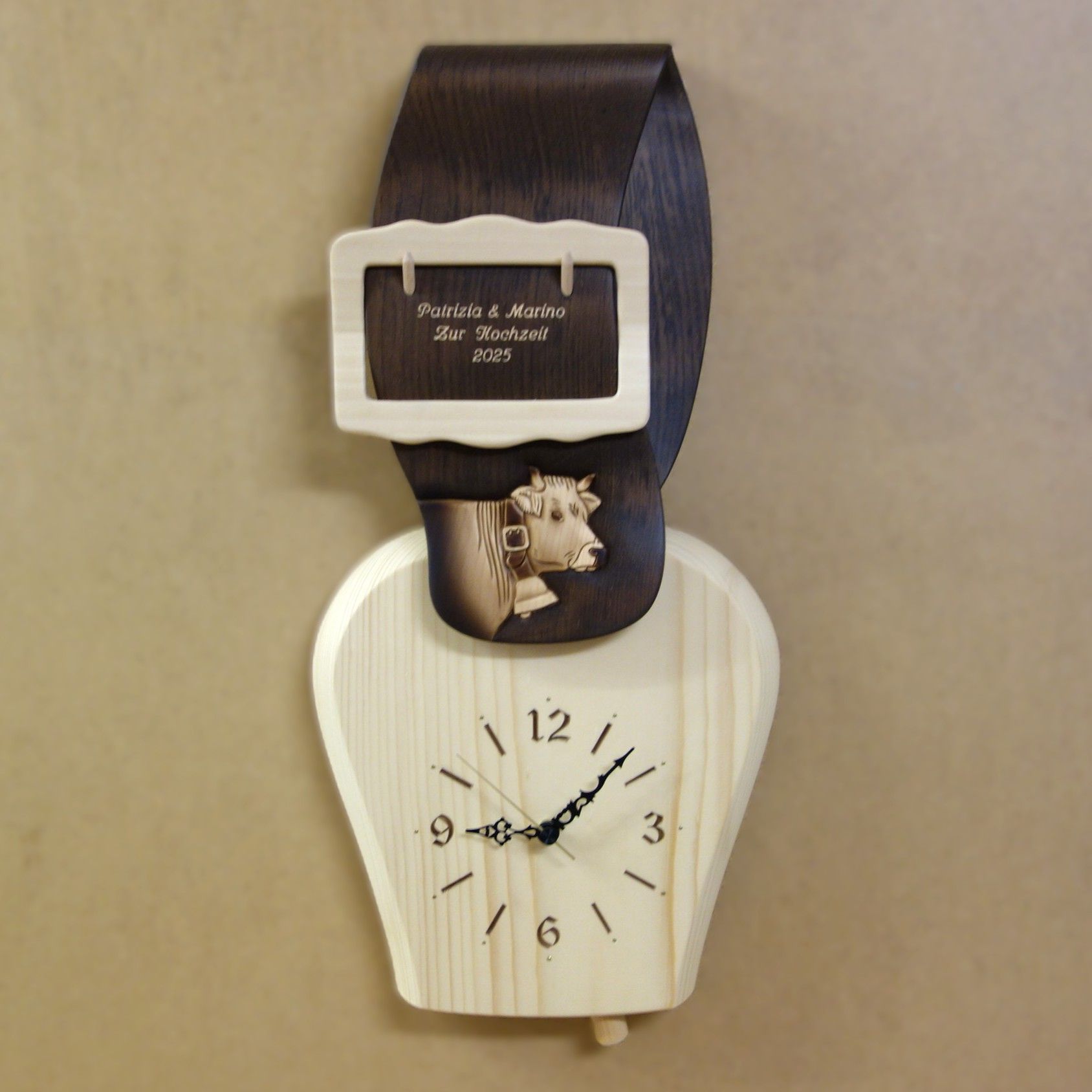 Schnitzerei: Kuhkopf A mit Hörner und Glocke